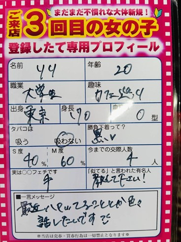極上新規女性来店で