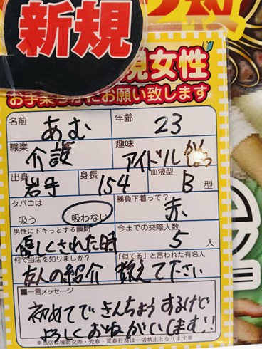 本日の新規女性は