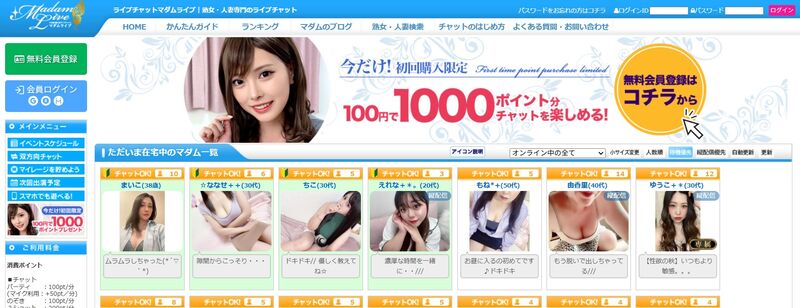 マダムライブは30〜40代の大人女性・人妻に特化したライブチャットです。