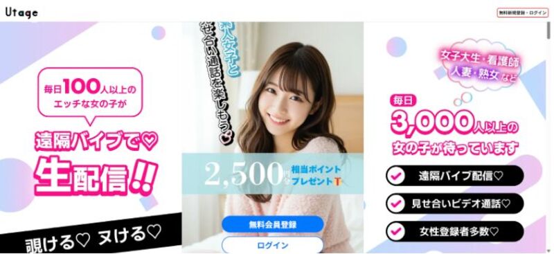 UTAGEは色白ギャル・清楚系など幅広いタイプの若い子と話せるライブチャットアプリです。