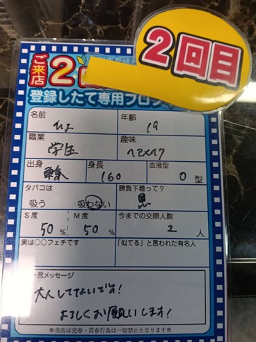 イブの歌舞伎町女性の荷物がぁ〜あ〜あ〜、 ドンキの買い物袋だったたらぁ〜あ〜あ〜、 コスプレ入ってないか気になる〜 あると思います! イブでも女性沢山まだまだ女性ラッシュ あると思います! ![]() ![]() ![]() 何でこんなに若い子がイブに MOMOにいるのか分かんないと 男性(お客様)が嘆きながら ニコニコでトーク無双中 私も先ほど女性から恋人いないから 来ました!と夢がないようで 夢がある言葉をいただいたところ 女の子意外とイブでも暇!! ![]() ![]() ![]() ![]() ![]() 初回大人気 めっちゃ可愛い2回目 只今抽選トーク中 ライバルめちゃ少ない すぐ出番まわってきます 今ならご新規様は ![]() 入会金も実質無料!! このチャンスをお見逃しなく! 逆ナン館フリーパス進呈 ※Aプラン除く。※ ![]() 一度で二度おいしいお店!! |