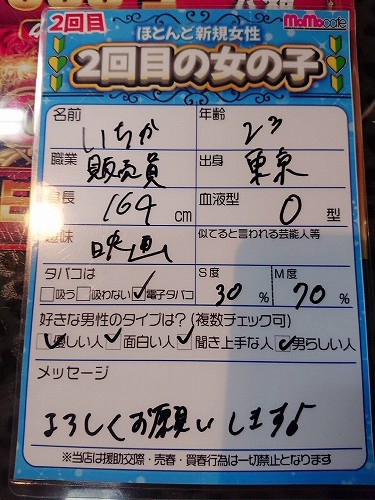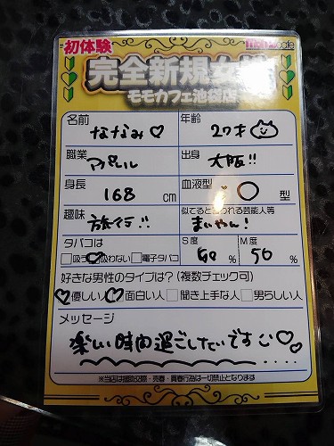 毎月沢山の女性達がきてくれていますが ここである疑問が浮上 誰が1番人気だろう。 さすがに月単位だと女性多すぎて 大変なので 今週の1番決めるか!ってことで モモ池グランプリ GPイベント開催 ![]() 人気女性や 新規含むフレッシュガールちゃんに 招待券を配布し集めて 男性のお客様に 今週の1番人気女性を決めてもらうので 毎週日曜日は 全てコミコミ5000円 時間無制限(閉店まで) トーク無制限 成立無制限 出会いまくって1番決めよーや トランプ抽選率や成立回数の統計で 1番が決まる 本日もありがとうございました! ![]() 11/15 完 本日のピックアップガール ![]() ![]() 大当たり 物凄い勢いが連チャンした1日 特に後半戦! 女性来店RUSHに出会いRUSH 明日は 大人気イベント モモ池グランプリ開催 GP限定パック 1日出会い放題でお得に 出会いまくってくださいな! 新星ガールちゃん達も増えており 招待してますので いつも以上に 新たなる出会いをご堪能ください 明日もよろしくお願い致します 朝12時OPEN! 最終決戦 スタンプラリー ![]() 有料入店と成立毎に ポイントGET ミッション達成で 10,000円以上の 割引券プレゼント この期間お見逃しなく!! ![]() 14時までのご来店で 1日出会い放題 全てコミコミ5000円 ![]() 18時からナイトパック! トークし放題 成立料も全込み ![]() 深夜の決定版 ミッドナイトパック トークし放題 成立料も全込み