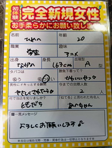 しかし女子来店はアリなのでご安心を ![]() そしてイイ時間なので来てね ![]() ![]() ![]() クールな印象のある子ですけども 実は結構笑う子なんですよね そして笑顔は一級品の可愛さですから 何とか笑わせてみてください ![]() ![]() ![]() メインタイムですけども静かだね いまいち爆発力が無いって感じですかね そろそろラッシュ来るでしょう 今ならご新規様は ![]() 入会金も実質無料!! このチャンスをお見逃しなく! 《youtuberが当店に潜入?》 逆ナン館フリーパス進呈 ※Aプラン除く。※ ![]() 一度で二度おいしいお店!! |