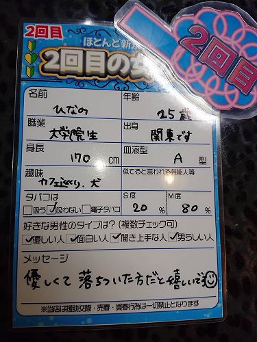 GPイベント開催 ![]() 人気女性や 新規含むフレッシュガールちゃんに 招待券を配布し集めて 男性のお客様に 今週の1番人気女性を決めてもらうので 毎週日曜日は 全てコミコミ5000円 時間無制限(閉店まで) トーク無制限 成立無制限 出会いまくって1番決めよー トランプ抽選率や成立回数の統計で 1番が決まる 本日もありがとうございました! ![]() 4/11 完 本日のピックアップガール ![]() ![]() ![]() 成立祭最終日の今日は天気の良さもあり 女性の勢い増し増しで入れ替わりまくる 激熱展開に大量のカップルが誕生しました 成立祭らしくたくさんの成立した男性に 割チケを配ることができました! 明日は日曜限定イベント開催! お得に1日成立無制限! さらに美女大量に招待してますので 思う存分連れ出しまくってください チャンス見逃さないように 少しでも早めに来ておくのがオススメ! 明日も12時OPEN! よろしくお願い致します