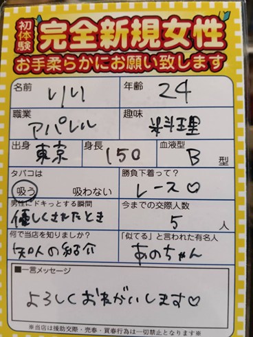 たちが良い ![]() ![]() ![]() 3連休中日立ち上がり良し 「お正月は女性少ないの?」 みたいに少ない前提で男性から ちょいちょい聞かれますけど 当店お正月ゾーンは とうに過ぎております!!! 満席多めの女性100名over 本日もいきますよ ![]() ![]() ![]() 店内のBGMが【北の国から】に なって故郷を思い出し エモい表情をされていた ドサンコレディ 今ならご新規様は ![]() 入会金も実質無料!! このチャンスをお見逃しなく! 逆ナン館フリーパス進呈 ※Aプラン除く。※ ![]() 一度で二度おいしいお店!! |